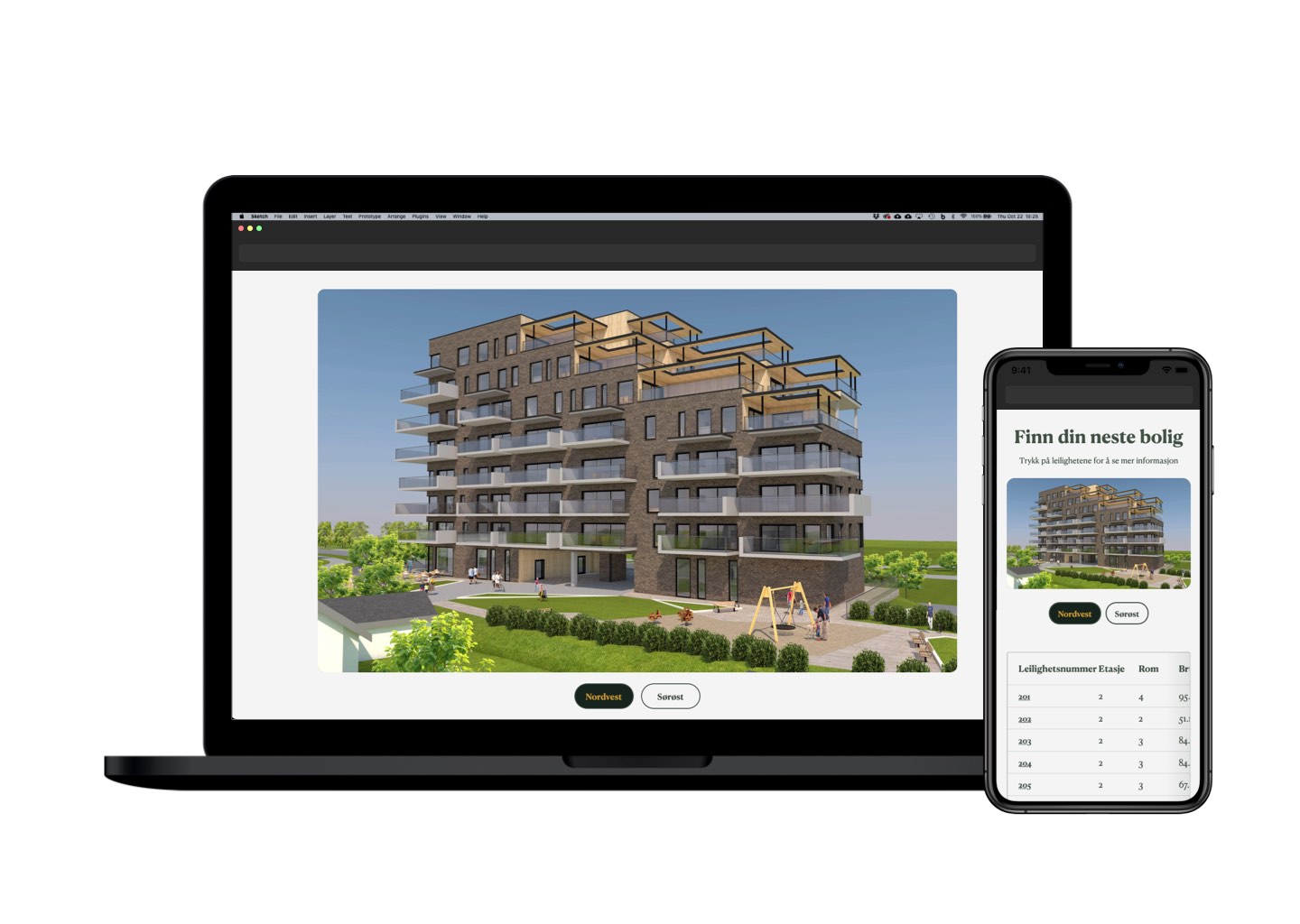 På Linnestad1940.no får du en visuell oversikt over alle leiligheter i den nye boligbygget i hjertet av Bjørkelangen. For hver leilighet presenterer vi selvsagt plantegninger og bilder, i tillegg til praktisk informasjon, pris og tilgjengelighet. Webappen er laget slik at kunden selv kan legge til og endre solgte og reserverte boliger.
